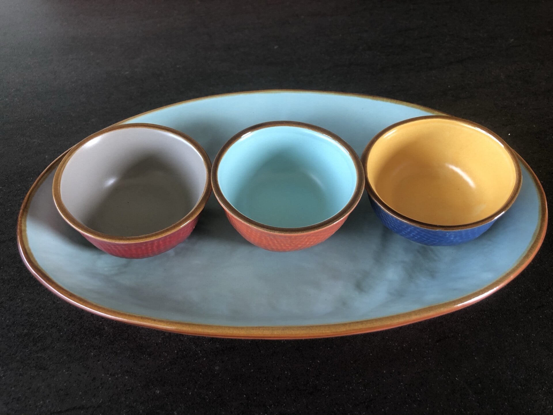 verschillende kleurcombinaties van de schaaltjes en kommetjes mogelijk